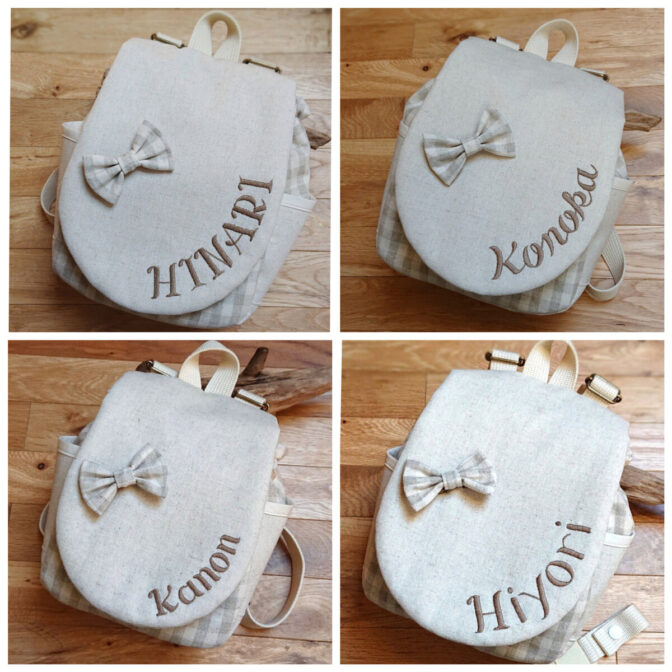 お名前刺繍入りリボンブローチベビーリュック(グレーチェック)