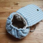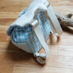 お名前刺繍入り星のブローチベビーリュック(水色チェック)