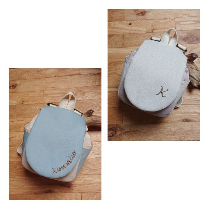 初めてのリュック、出産祝い、お誕生日ギフトにぴったりな世界でひとつだけのお名前刺繍入りのベビーリュックになります。
