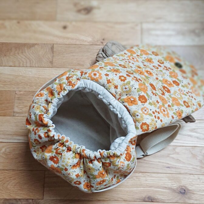 お名前刺繍入りリボンブローチベビーリュック (花柄 ナチュラオレンジ)